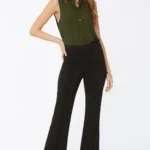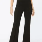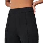 Our elegant medium-rise, fit-and-flare pants are designed for the modern woman who demands both style and innovation. Crafted from premium, high-stretch Ponte Di Roma knit in a timeless jet-black hue, these pants offer a flattering silhouette that moves with you all day long.